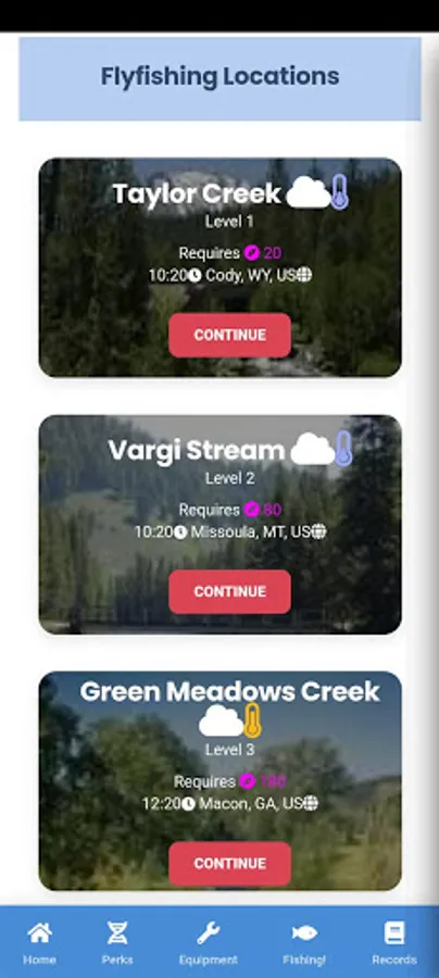 * Over 100 Fishing Locations from around the world using real world weather and imagery.