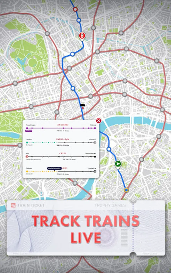 Compete to be at the top of the multiplayer leaderboards and challenge your friends and other real life train managers from all over the world.