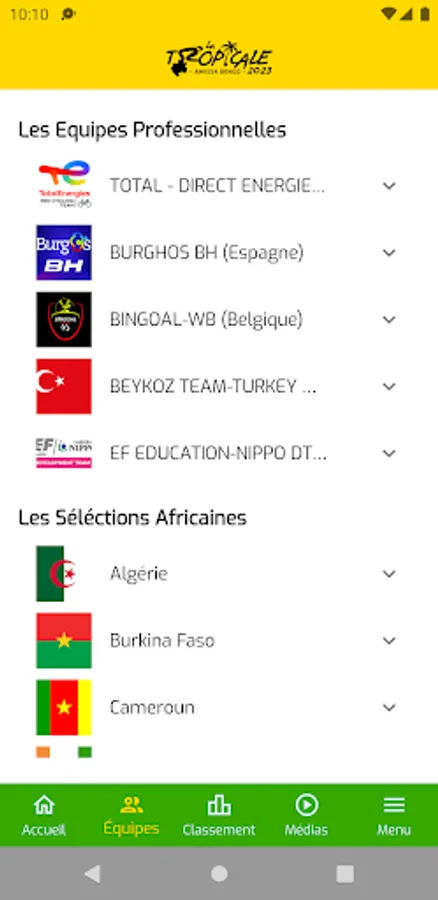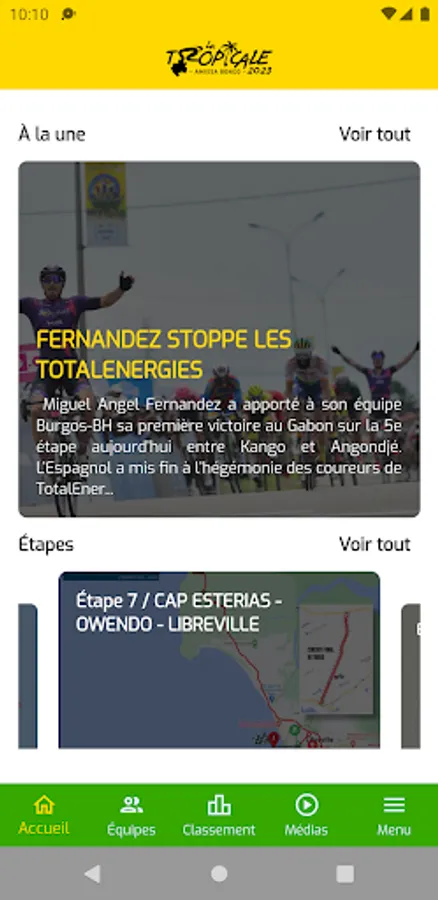 Official application of the Amissa Bongo Tropical Race which is held every year in Gabon in January. The La Tropicale 2023 application provides real-time information related to La Tropicale Amissa Bongo, the largest cycling race on the African continent. All the news, routes, stages, results and rankings and the media. But the application also gives access to a database of African cyclists unique in the world.