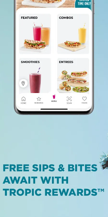 Get a free smoothie* after your first purchase when you download the app and sign up for our loyalty program, Tropic Rewards®.