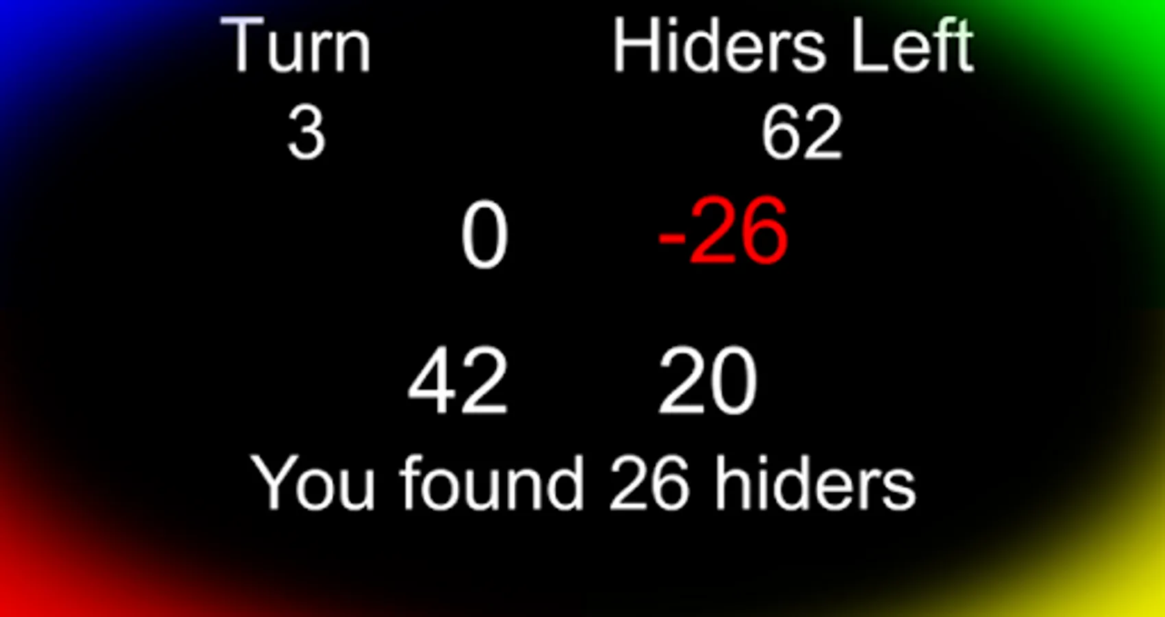 If you are playing as the hider, you must pick a corner and hide with the rest. Hoping the seeker dose not find you.