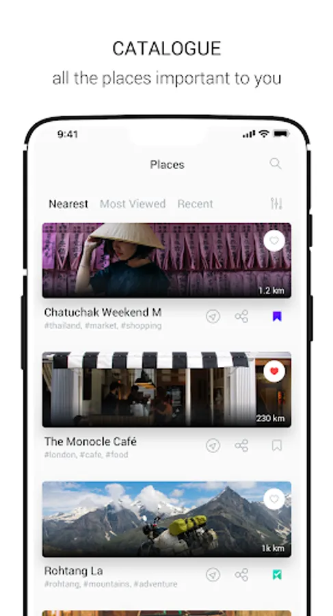 - Create a Bucket list for future travels and bookmark places as 'to visit' or ‘been’