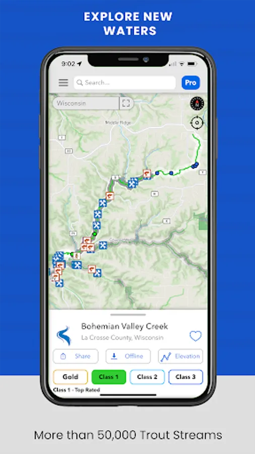 • DISCOVER: Color-coded stream ratings allow you to find quality fly fishing spots at a glance