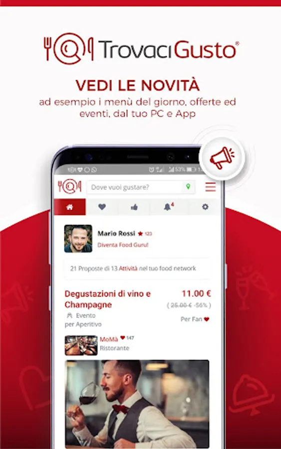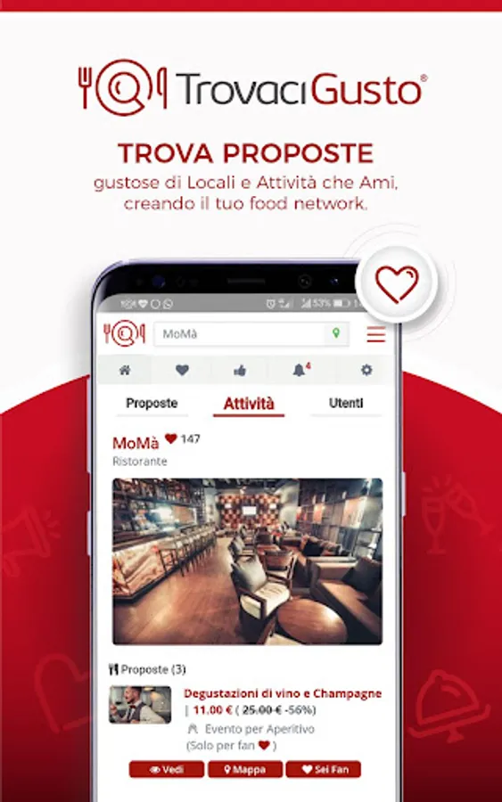 Official app of the FindGusto Project, TrovaciGusto is the easiest way to enjoy every day because it’s the only app that connects you to the whole food world: