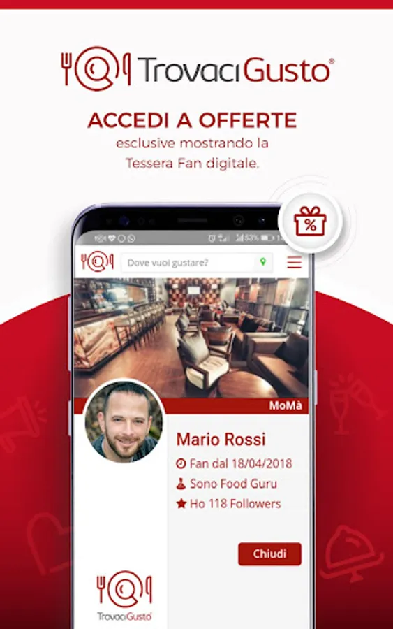 * You find the most followed people in zone and the Restaurants and other food businesses they love! If you have many followers, you can become a “food guru” and receive invitations at special conditions from food businesses that want you as their fan, or manage a business account and earn money for your "influencer marketing" actions