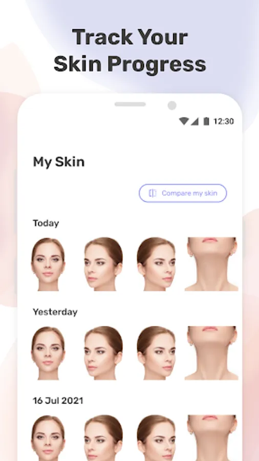 - Track your skincare progress through powerful photo taking and selfie comparisons