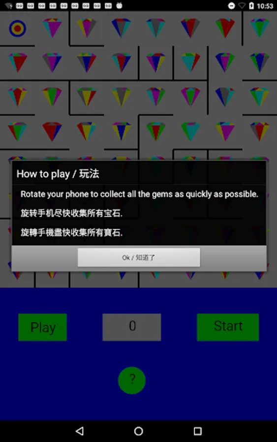 Rotate your phone or tablet to collect all the gems as quickly as possible.