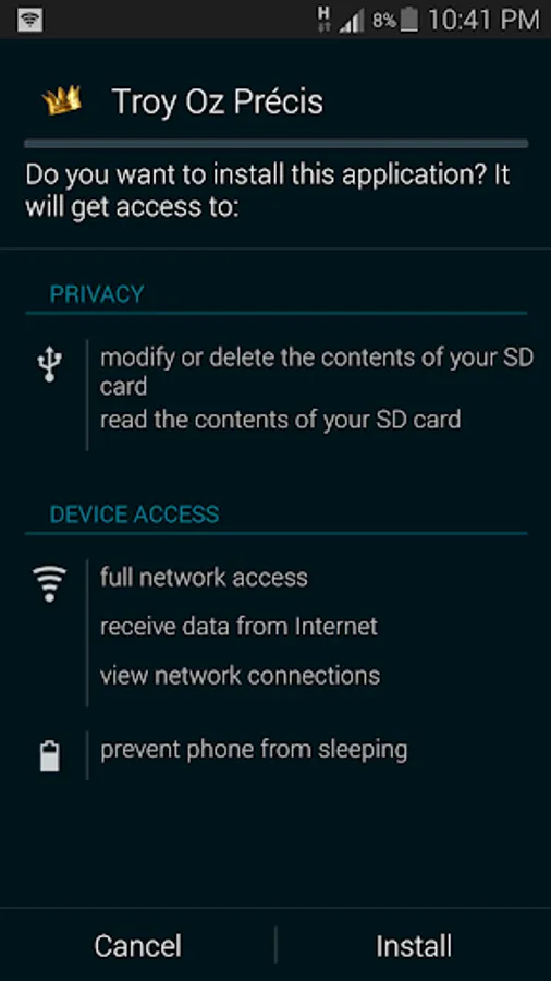 Read and Write permission to the SD card (external storage). This is required for the saving of charts to the gallery. This application will create a separate directory/album in the gallery called TroyOzCharts, which will contain any charts the user decides to save or share.