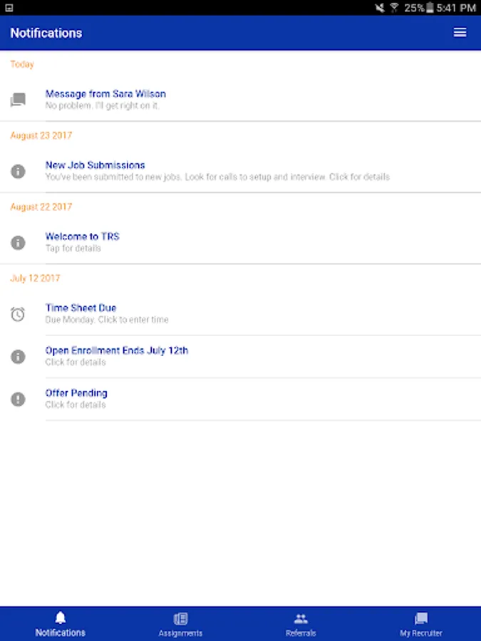 Use TRS Nurse to instantly text or call your recruiter at any time. Ask questions, provide feedback and accept a position when it’s convenient for you to do so. TRS Nurse puts you in the driver’s seat with your recruiter to manage your assignments and provide instantaneous communication.