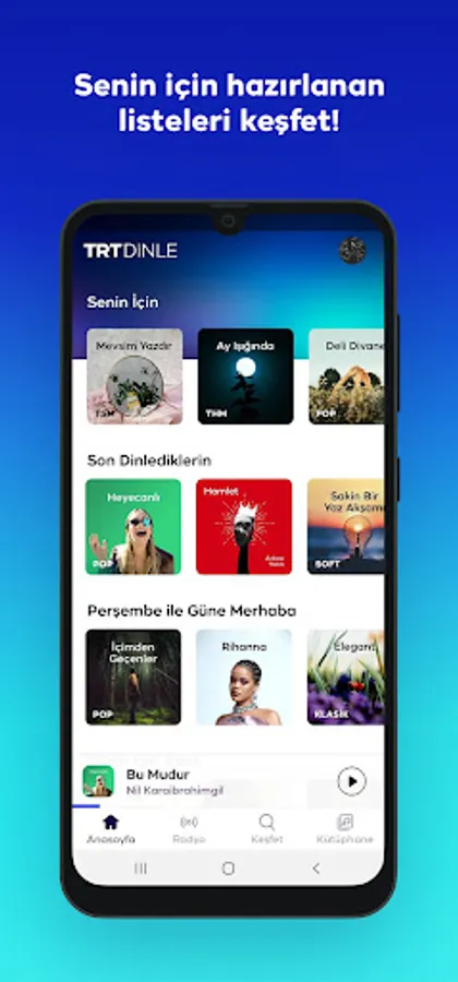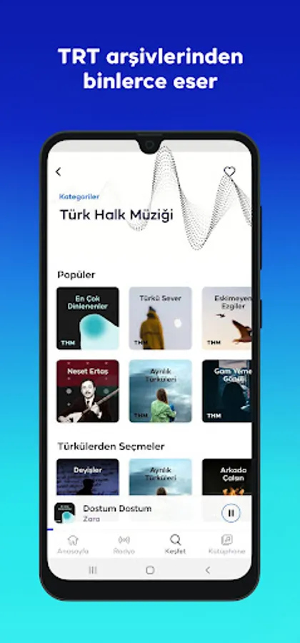 Exclusive songs from TRT's archives, folk songs, private recordings, unforgettable radio theaters, TRT concerts and podcast adaptations of various TRT productions are available only on TRT Dinle.