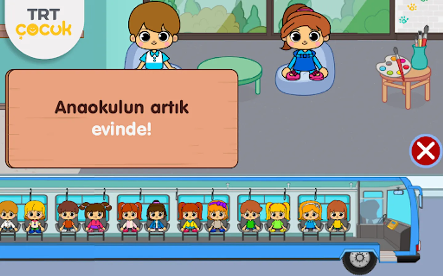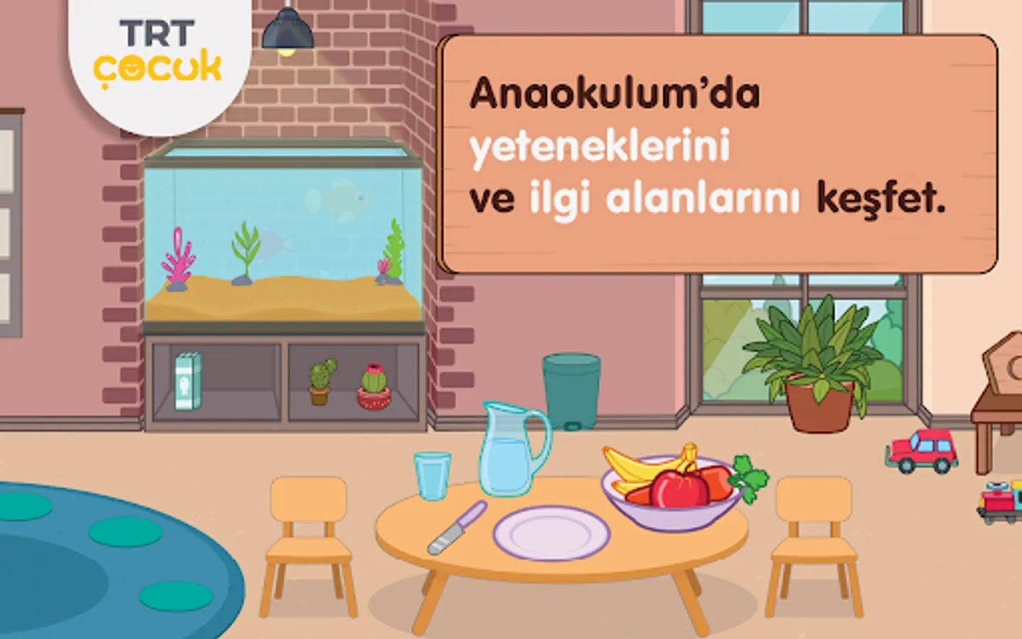 In our school, children choose the characters they want and place them in the classroom and start the game. While children are having fun with my TRT Kids Kindergarten, they discover the classroom environment, learn new things, and develop their social and vital skills.