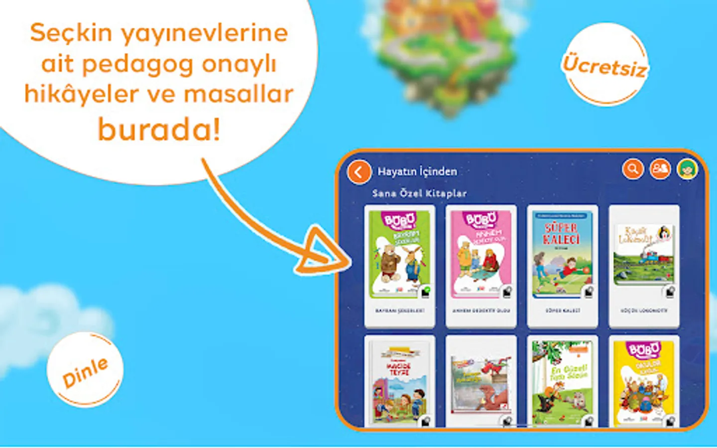 With its fun, reliable and child-friendly design, it provides the opportunity to explore the books for free and without ads.