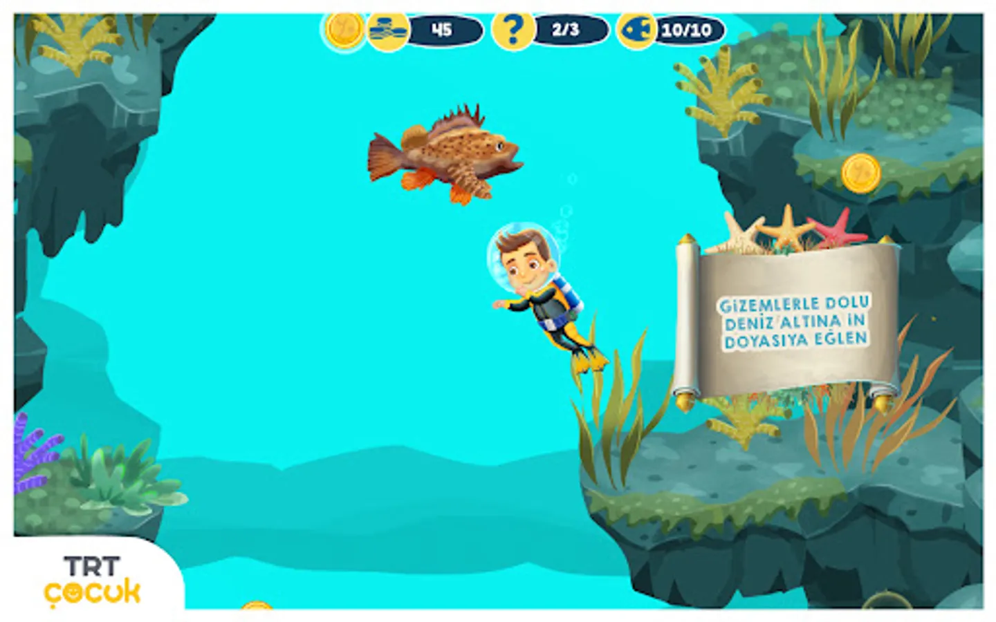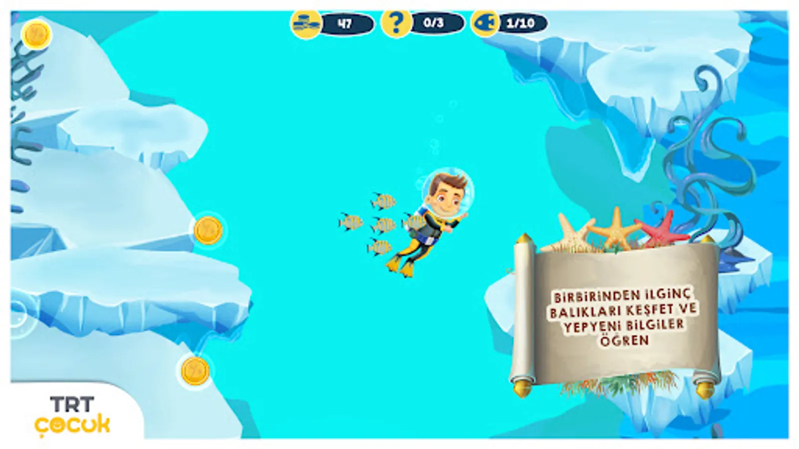 Underwater world, the mysterious and deep space. this is why it was very difficult to learn the creatures living under the water. Underwater Explorers of our game in different climates, regions and countries of the deep waters; interesting fish and sea creatures waiting to be discovered from each other. Now, children, "Underwater Explorer 'and plunges deep the game is discovering the underwater life. Underwater explorers wander through the various layers of seas and oceans, fish, especially, will meet with a variety deniz canlı. Come and see the mystery of life under water immediately start exploring!