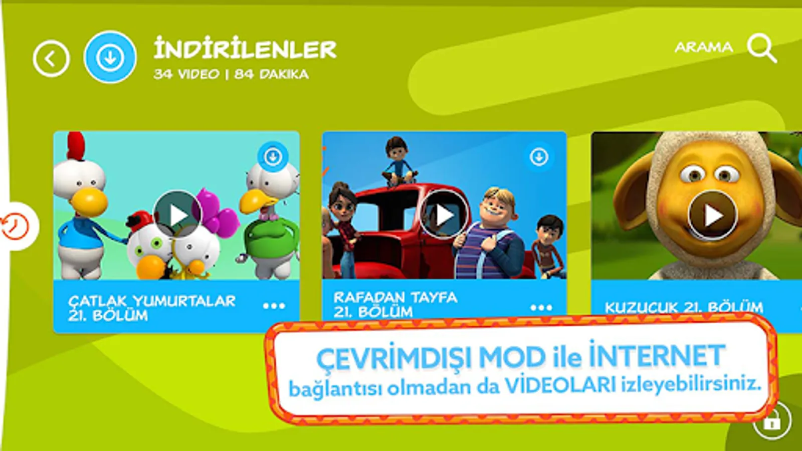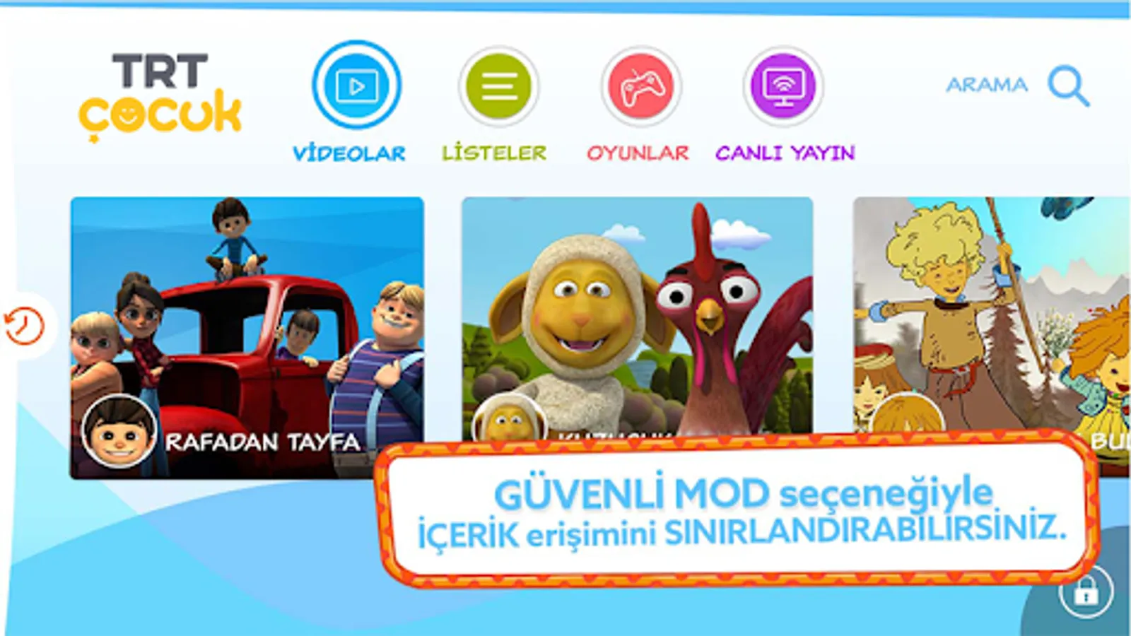 • Extensive TRT Children's archive with more than 50 unforgettable, entertaining and educational cartoons and programs such as Canım Kardeşim, Dodohando, Köstebekgiller, Kuzucuk, Çılgın Orman, Erdem, Cille, Keloğlan, Ciciki, My Teacher Canım Benim, Magical Mathematics.