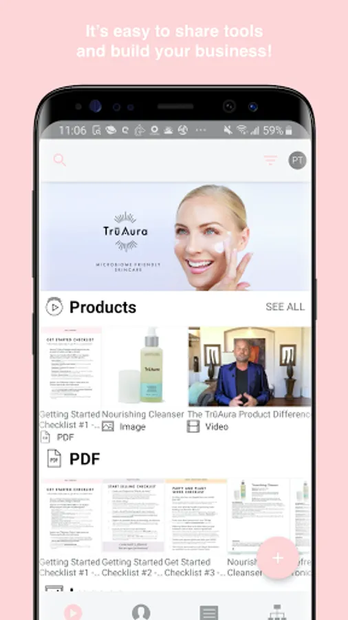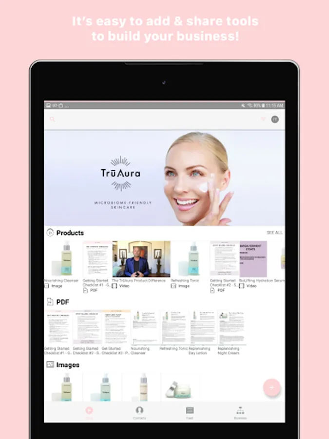 With the TruAura Share app, you can easily share your way to success with digital tools that create word-of-mouth buzz and complement belly-to-belly efforts! Connect with new contacts and interact with your team by sharing exclusive, corporate-approved content and digital tools. You’ll have a vast array of marketing materials, videos, social assets, and more—all right at your fingertips! The powerful, yet beautifully simple design, along with compelling tools, makes growing your business simpler than ever.