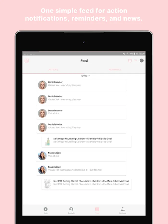 Feed: Keep track of everything you’ve shared and see what your contacts have viewed with notifications. You can even swipe notifications to mark them as a Reminder. News also brings all of the latest announcements and social posts from corporate straight to you--in one convenient place!