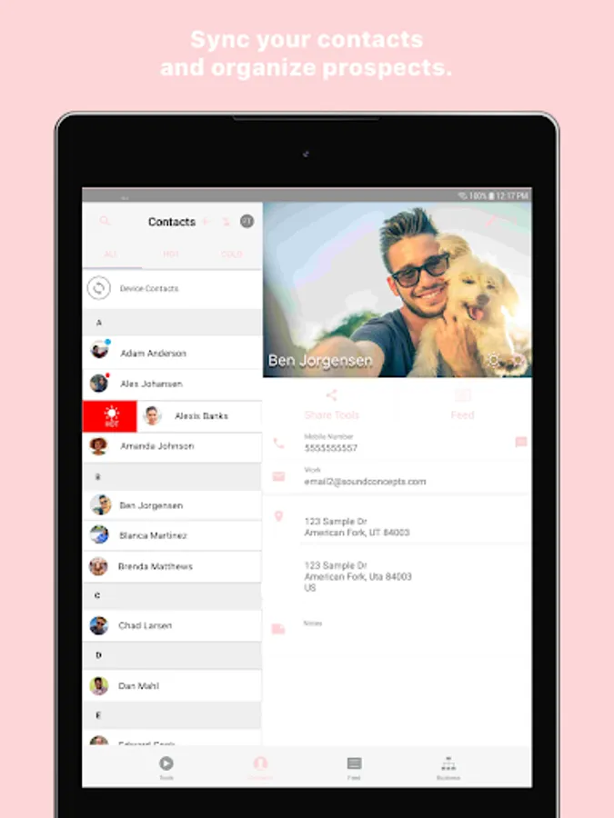 People: Manage contacts easily and swipe to sort them by interest level. You can make connections, add notes, or check out the Contact Feed to see the tools you've shared and whether or not your contacts have actually viewed them.