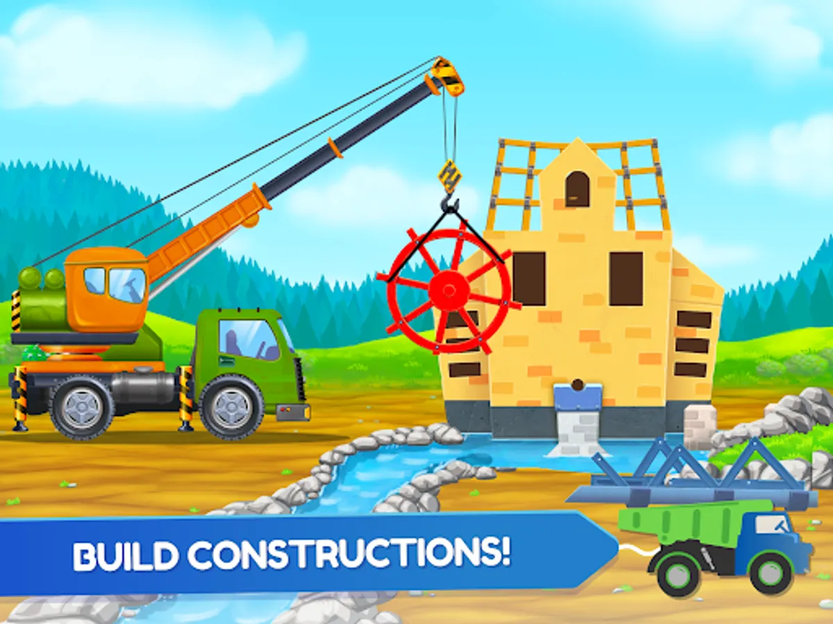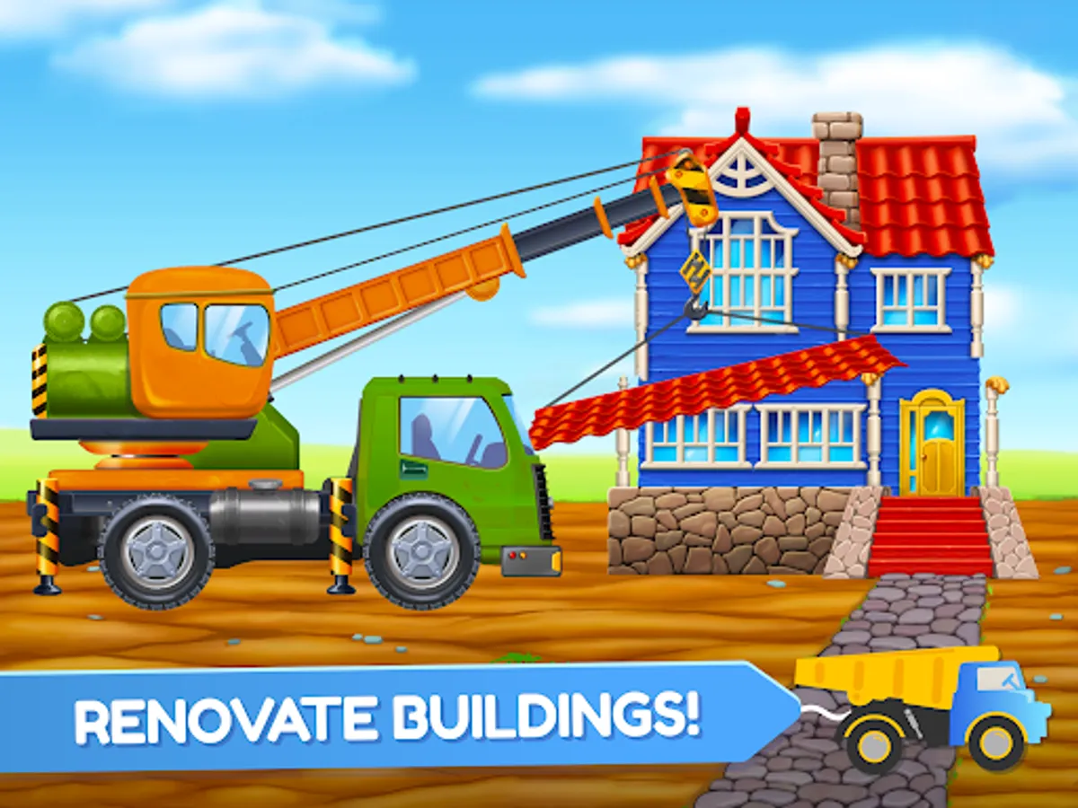 Our building game is bright and colorful, brining positive emotions and new knowledge to your little ones. Attractive gameplay will take your kids to the wonderful world, where they can construct huge buildings and explore construction sites.