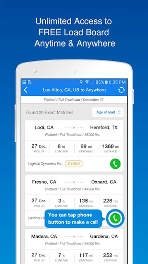 The ‘Load Board’ feature is the best solution for the owners of freight carriers to get free unlimited access to more than 70,000 loads per day. You can click on the “Find Loads” button to search for the loads posted daily in the locations of your choice.