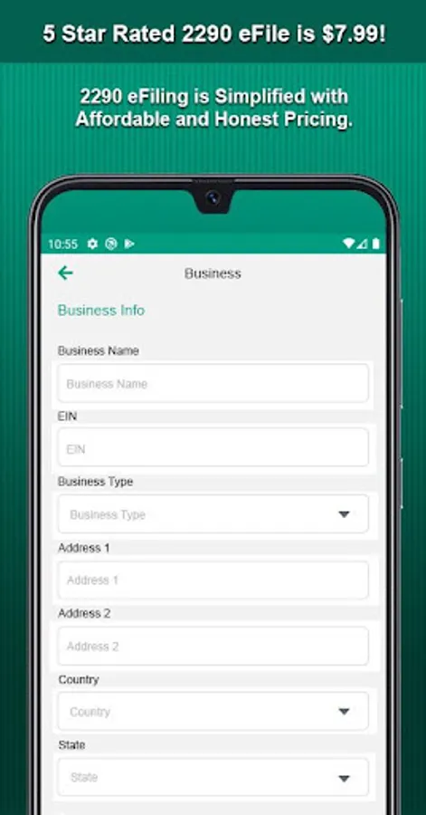 Getting Start with 2290 eFile is easy, just create a personalized account with your email and phone number. Start adding your business and vehicle details one by one and pick an option on how you want to pay the IRS for the taxes you owe. Submit it and receive the Schedule 1 receipt instantly. To start with your 2290 return you would need all these details;