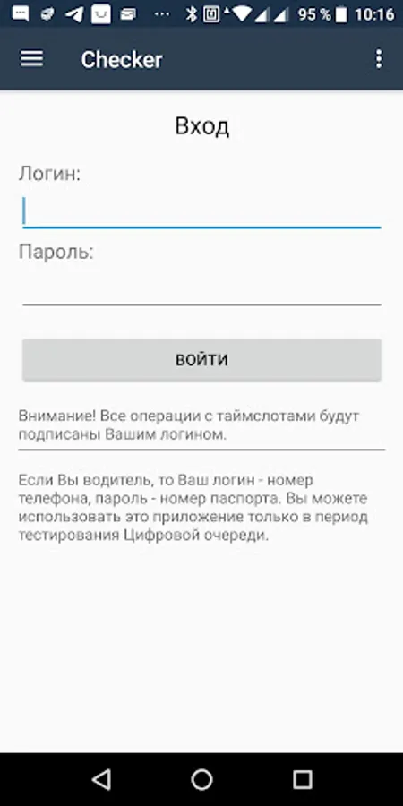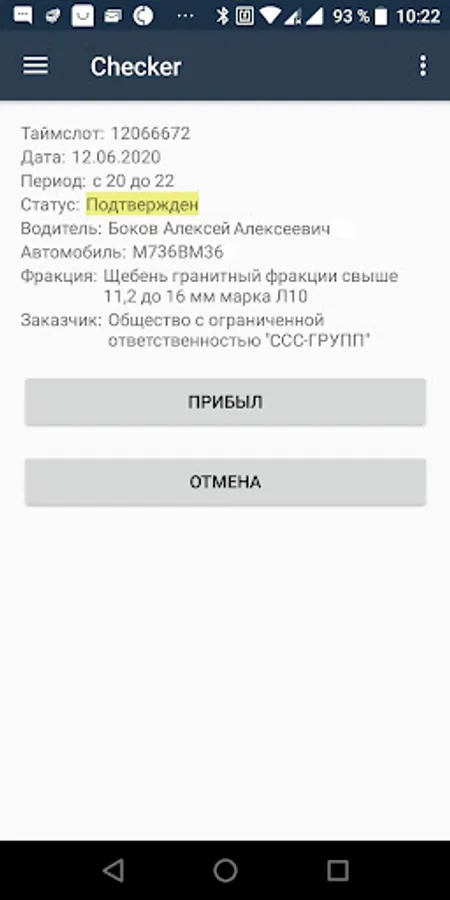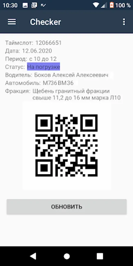 The application allows you to organize the workplace of a career employee to check timeslots or can be used by drivers to present timeslots when loading.