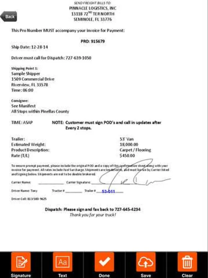 Welcome to the Truckers' Office, without the office. Presented by OOIDA, Truckerdox lets users sign, scan, save, and invoice as well as create a carrier packet that can be shared with customers. Secure loads faster by signing broker carrier agreements and confirmation sheets. This trucker app lets users send them to customers directly from within Truckerdox. Invoice faster by scanning proof-of-deliveries and creating complete invoices within minutes of delivery. Best of all, everything is saved in truckerdox cloud, where you can access your signed confirmation sheets, invoices, broker carrier agreements, and PODs.