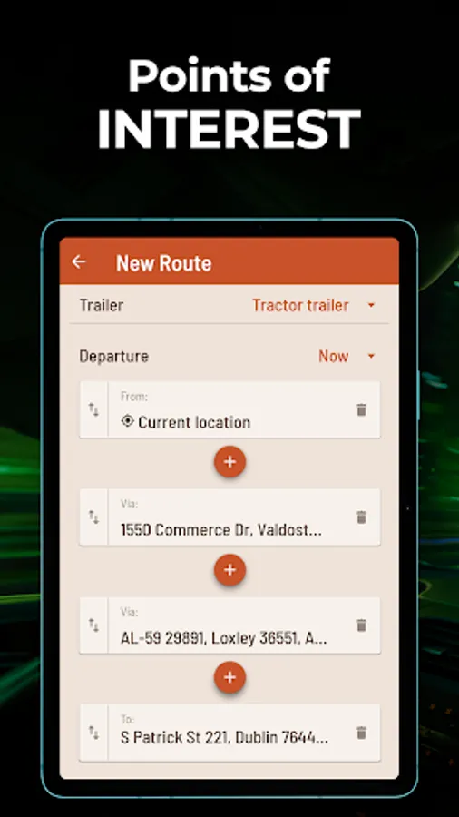 ・Get smart truck routes specific to your truck’s dimensions, weight, load and number of trailers