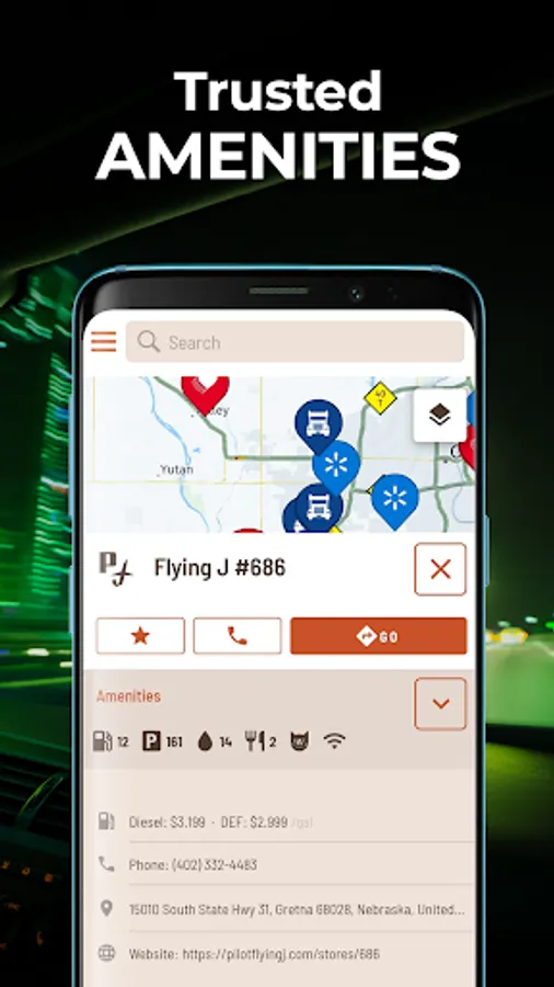 ・Points of Interest include easy click to call buttons, diesel pricing, hours of operation, and amenities