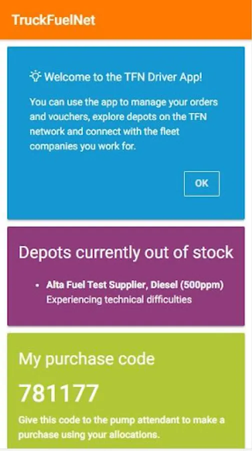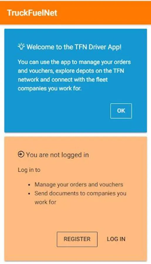 Via the app you will be able to purchase fuel and other products using orders or vouchers provided to you by the companies you work for.