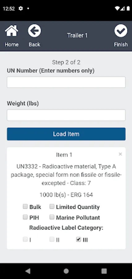 • With the HazMat Informer app you can enter hazardous materials in for each trailer being loaded and produce the required placard for every trailer