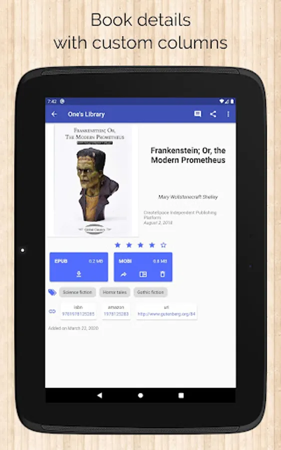 - Show book identifiers and link to source (like ISBN, Amazon, Google Books, Goodreads, etc)