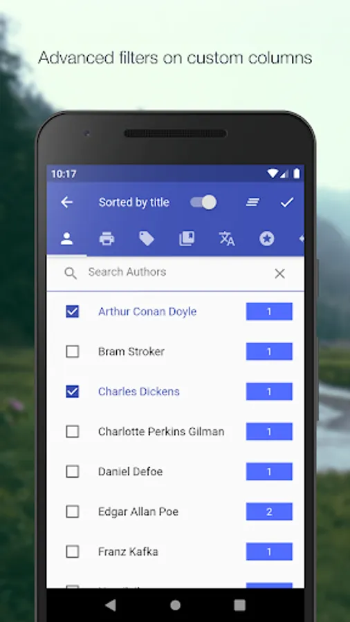 - Filter books on authors, series, tags, language, publishers, formats and in custom columns