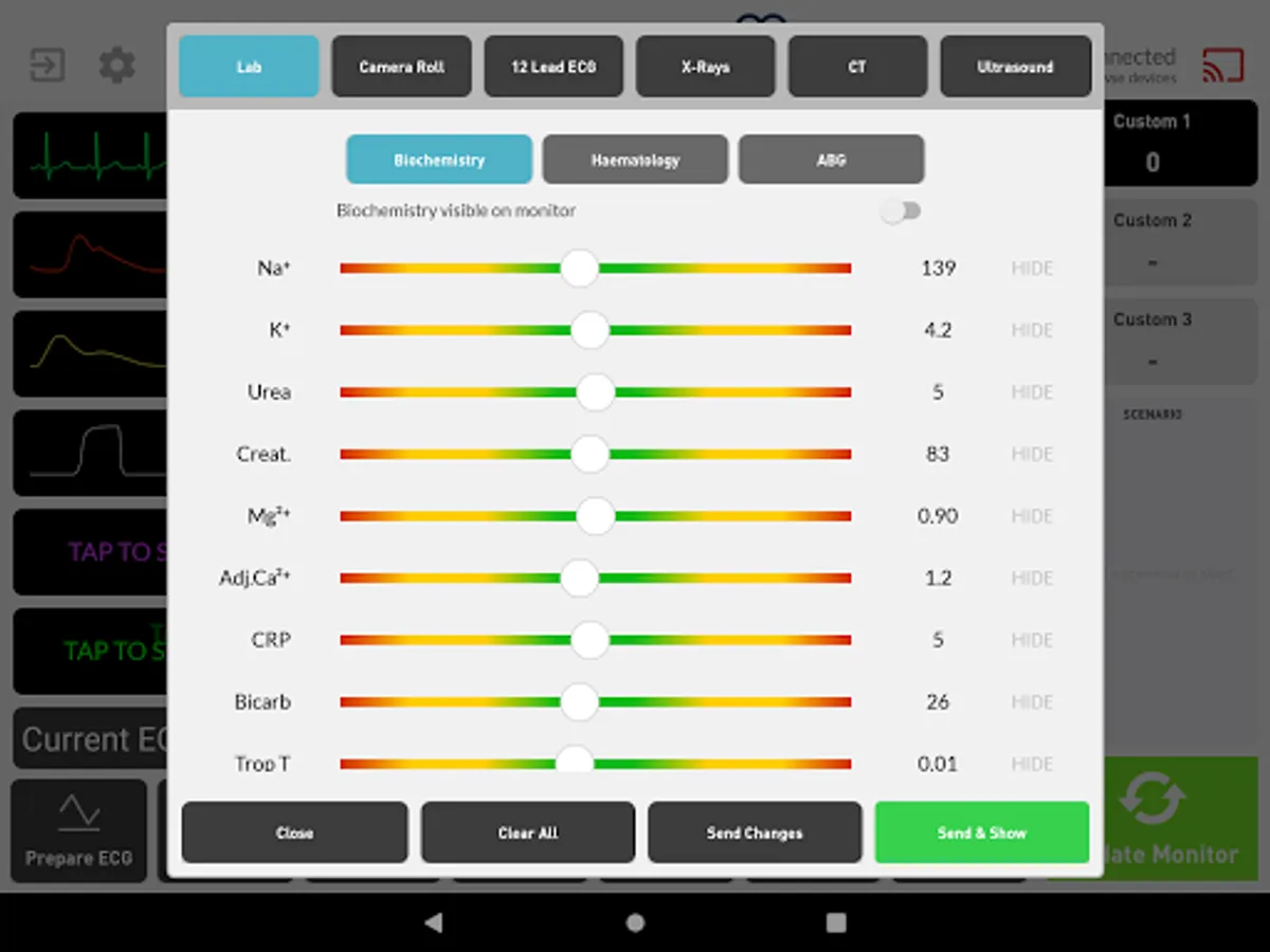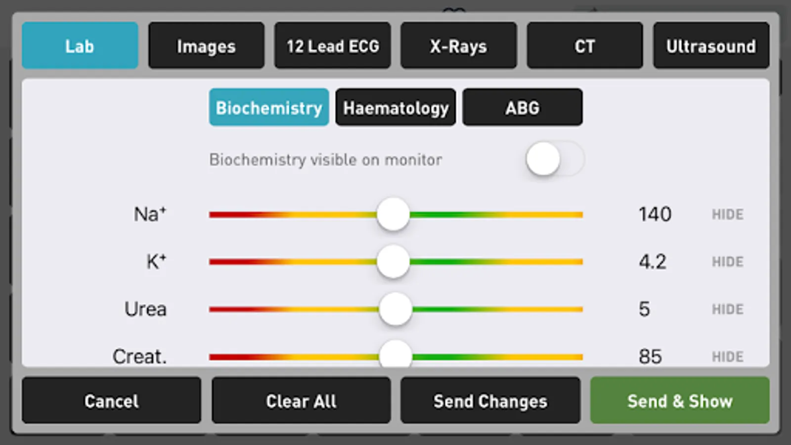 The teacher can alter multiple patient parameters as the scenario evolves: