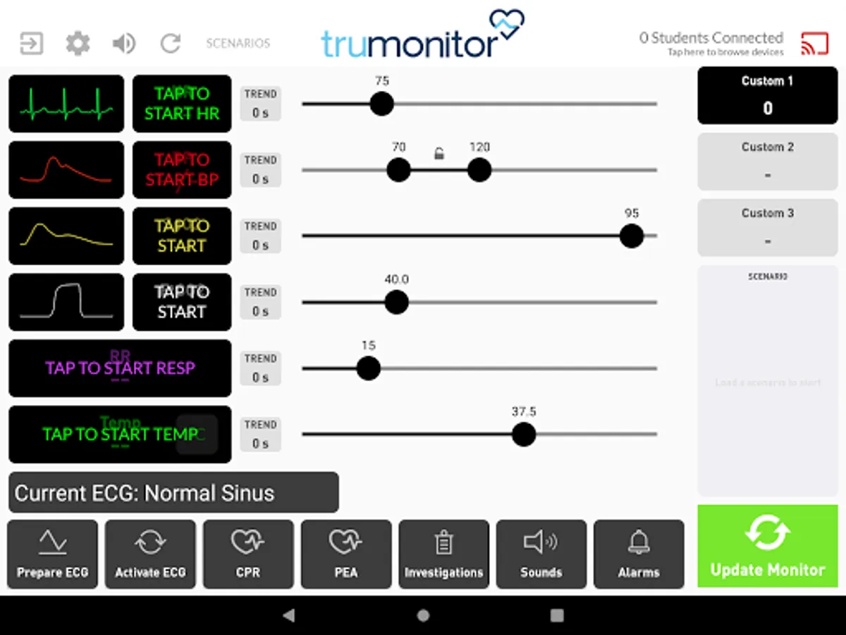 If the student initiates appropriate management for the simulated patient, the teacher can improve the patient’s vital signs. If not... the patient can deteriorate and eventually suffer cardiac arrest.