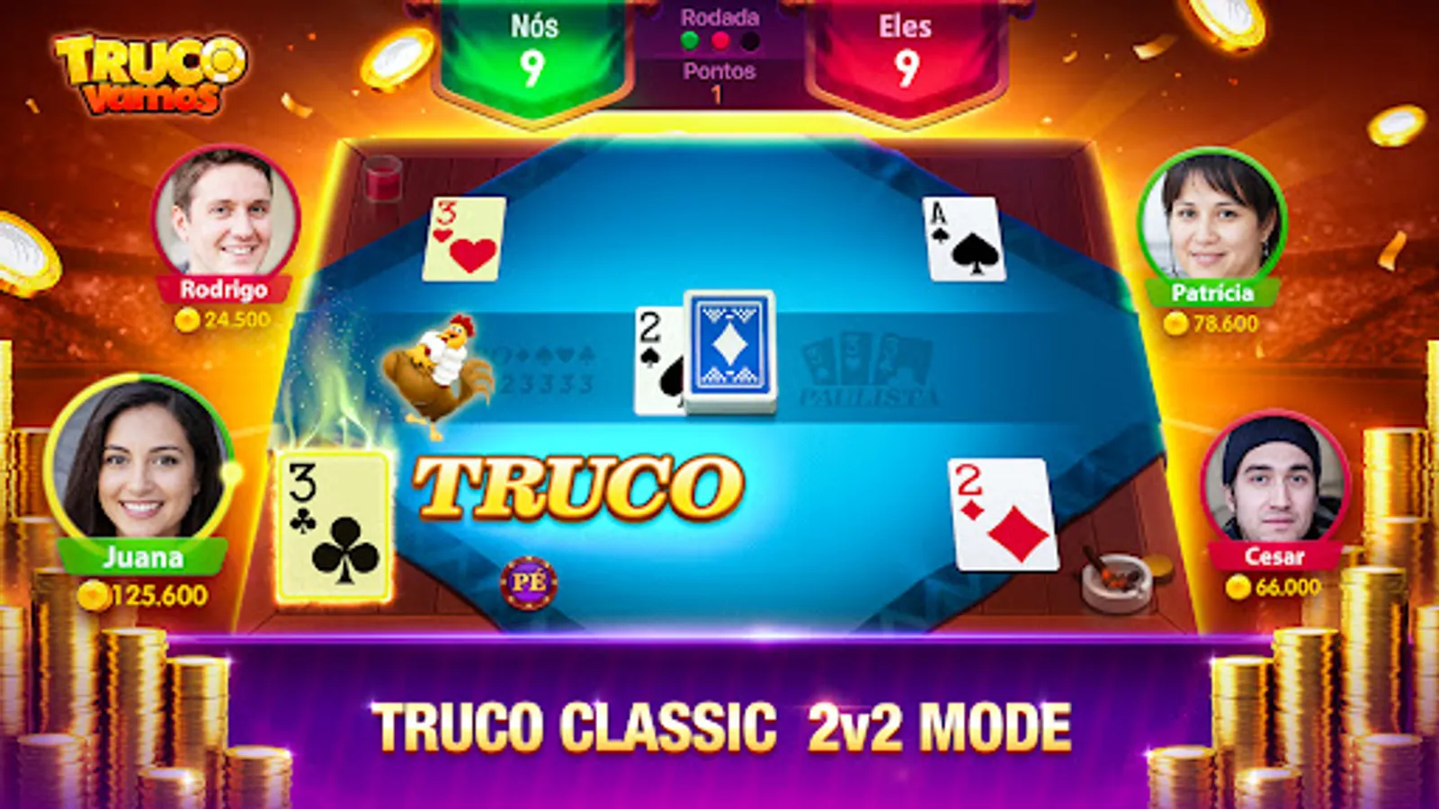 Download Truco Vamos and start your free game trip now! Create a table and invite your friends to play, and win them with your excellent card game skills!