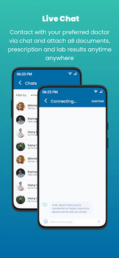 TruDoc integrated mobile application allows you to speak to a TruDoc doctor via voice/video call and live chat.