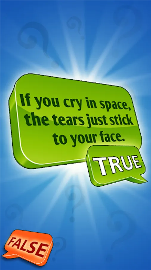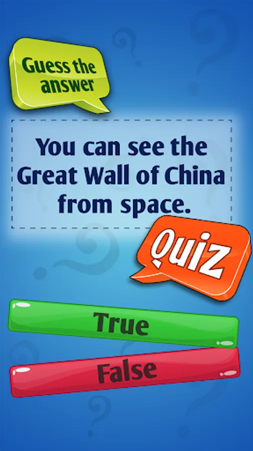 Can you stay in the game? How well do you know current GK? Can you guess the right answer? Take a quiz of knowledge right now! Decide is it true or false and learn while playing. The best multiple choice trivia quiz of knowledge for every smart boy or girl. Test your IQ, speed and memory with the most exciting true or false question and answer game. If there is a single crack in your knowledge, this smart quiz app will find it! Download the latest general knowledge app 2020 in English with true or false questions right now have a blast with loads of interesting facts. This is a real treat for a real fan of fun quizzes and question answer quiz games. Check your knowledge on history, countries and capitals, famous people, actors and actresses, football, basketball and more. Try out some cool addictive games for when your bored. True or false games for kids and adults are the best way to have fun and learn at the same time. Download True Or False Fun General Knowledge Quiz Game App and start the fun right now.