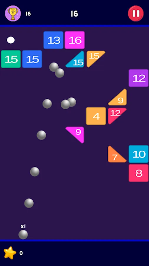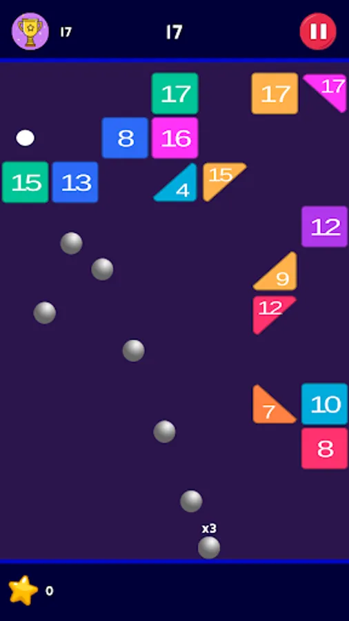 When you lift up finger, balls will be thrown towards bricks