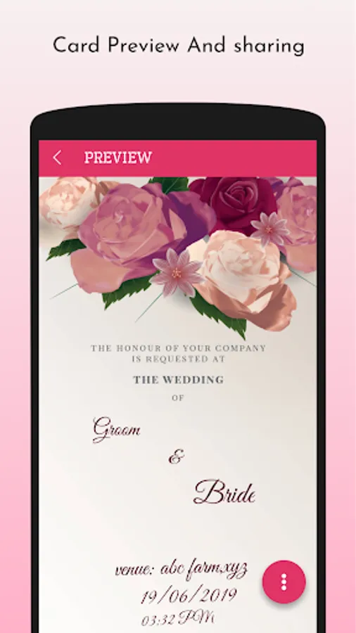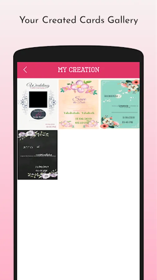 Various preloaded rich designs to choose from. There are preloaded awesome wedding card templates available specially tailored for wedding invitation card making. Process of using app is so easy that you will be able to create beautiful wedding cards in minutes.