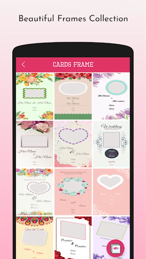 Many card frames are there in app so that you can choose it according to your liking and color combination.
