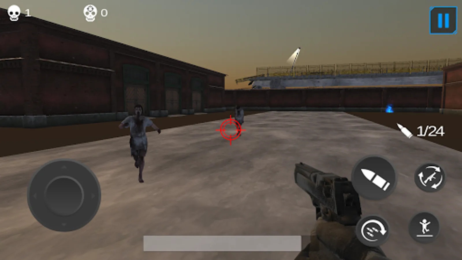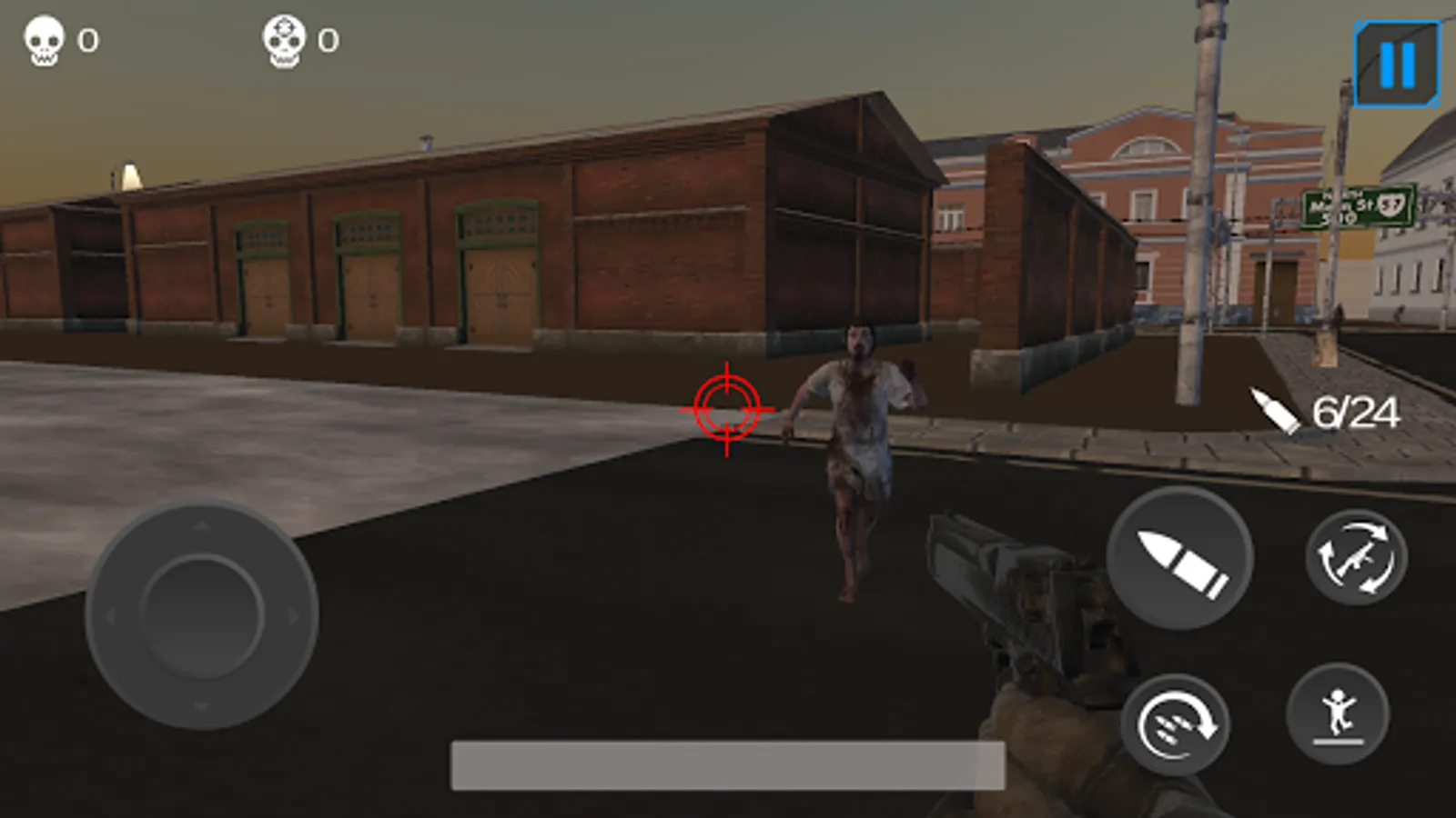 Want to kill zombies? Hit on zombie ground and shoot zombies approaching to you. Remember you have limited bullets so do not waste them. You will find additional bullets and health when you roam around.