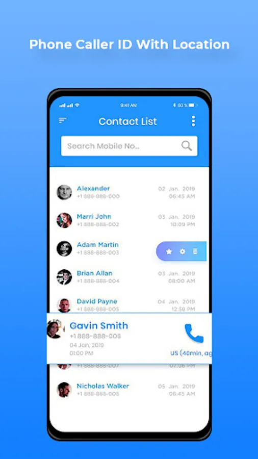 Caller Name and location Caller ID helps you to find Unknown phone number, Who the Caller Name ID, Who is calling me, Who called me, Call Search. Caller name ID app offers powerful phone call features for Bank Call, You can also find Number Locator, STD code, ISD code, Number Locator, Robo calls, Getcontact.