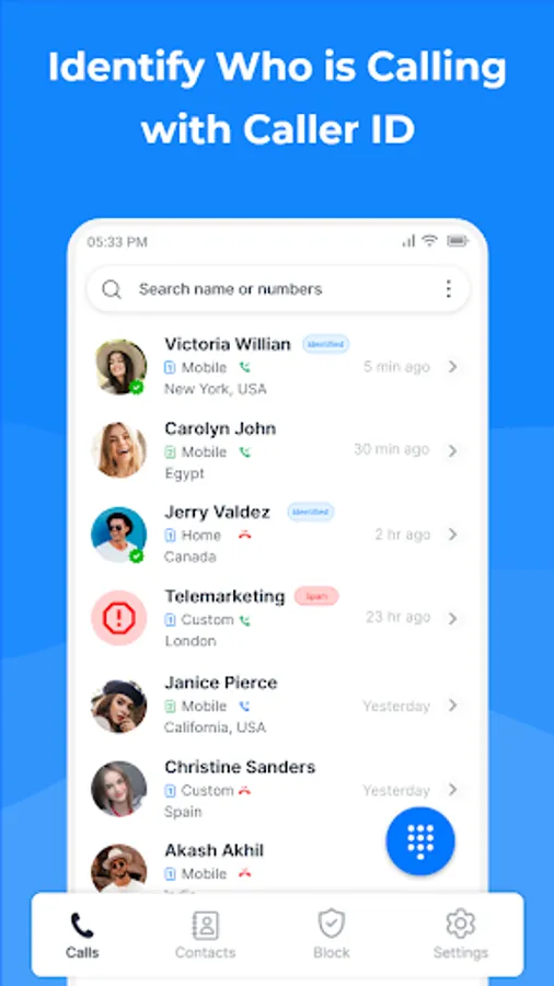 View the Caller ID who is calling and the caller location and name of the phone number on a multi-billion database. Once a result is found, you can easily add it directly to your phone book. Then you can easily find out who called, their address, city, state, carrier, and more, you can also see the tags and comments and much more on the phone app numbers and even know who's calling with this true identity of the caller on every incoming call.