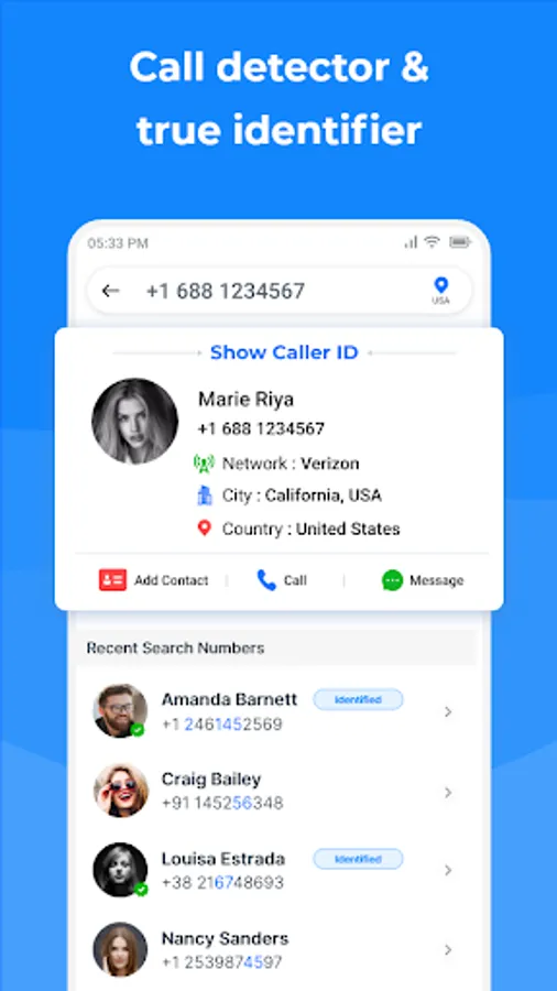 True ID Caller app which is trusted by millions shows the exact Caller ID with their name, Location & address. Also, it works as a spam call blocker to avoid unnecessary calls and Robocalls. Get Quick notifications who is calling you from an unknown number. Get most authentic information on every incoming call with this true ID caller's app.