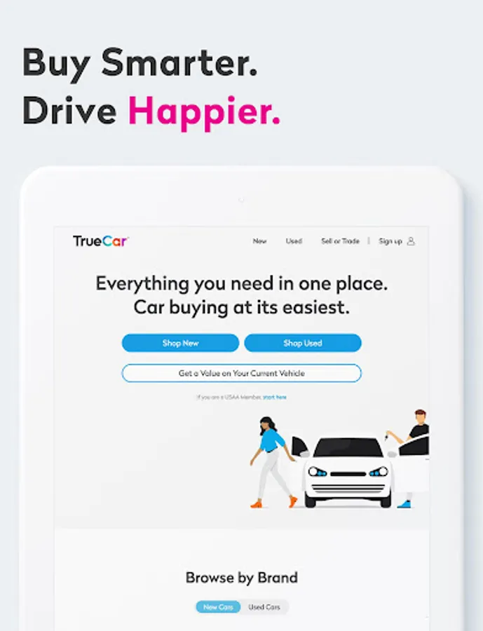 Buy smarter. Drive happier. With the TrueCar app, whether you’re browsing, buying new or used, selling, or trading-in, you’re in charge of the process from start to finish. Here’s how.