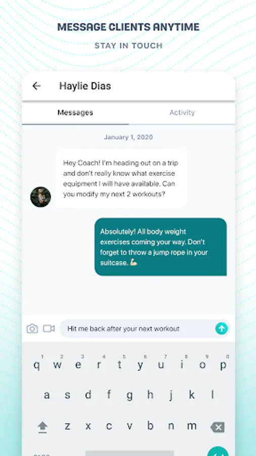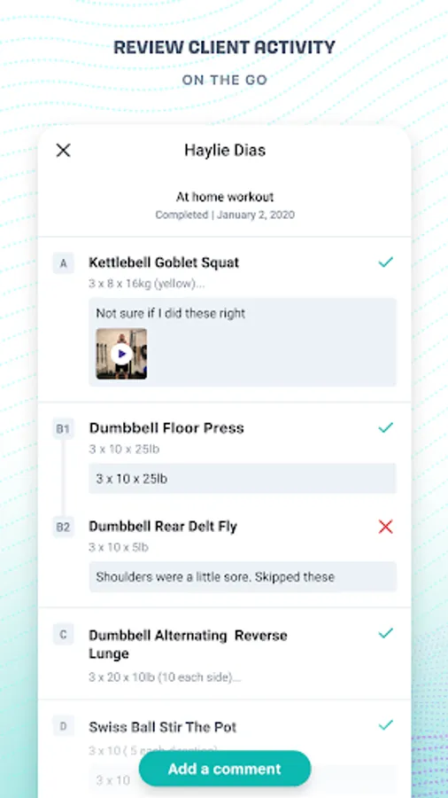 • Receive push notifications when clients send messages, complete workouts or post comments on workouts