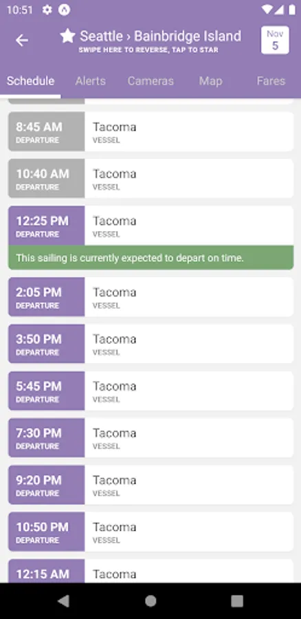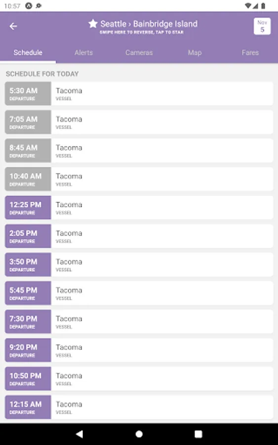 • Star your frequently used routes for quick access to the schedule and next sailing times.