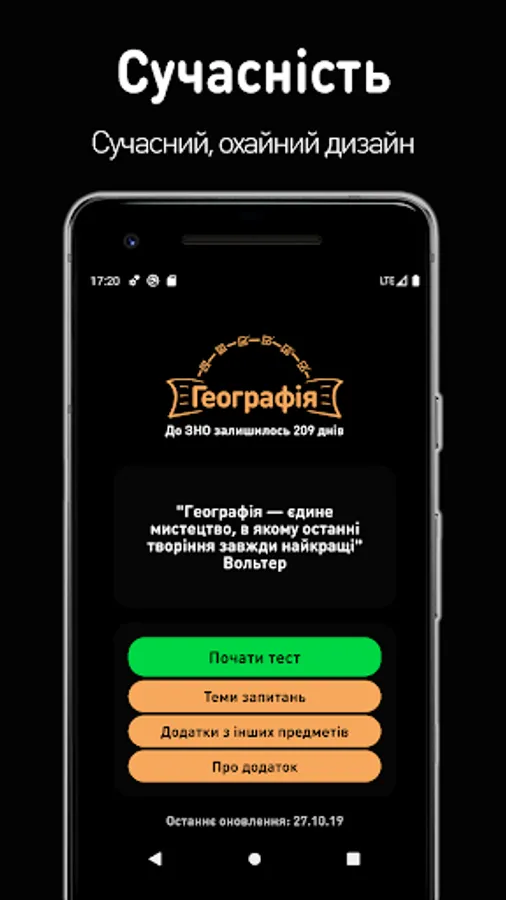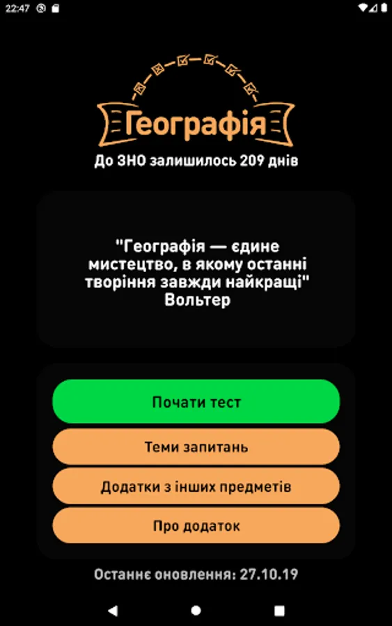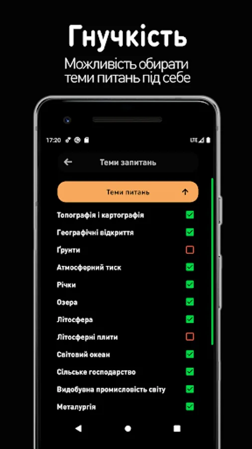 ZNO 2020 tests: Geography is a modern and convenient way to accelerate preparation for ZNO geography by solving typical tests. The application allows you to choose the topics of interest that you are most interested in.