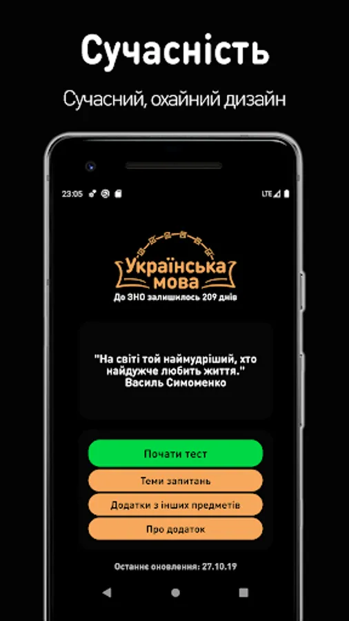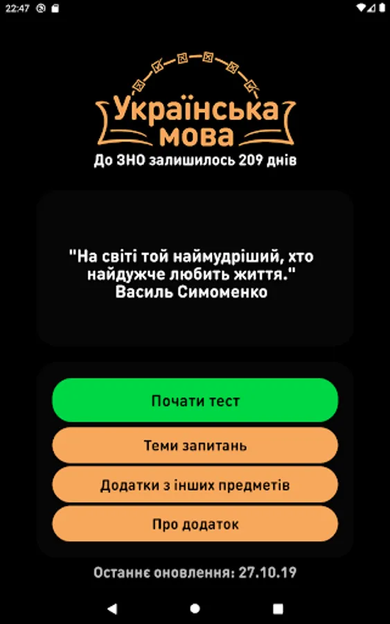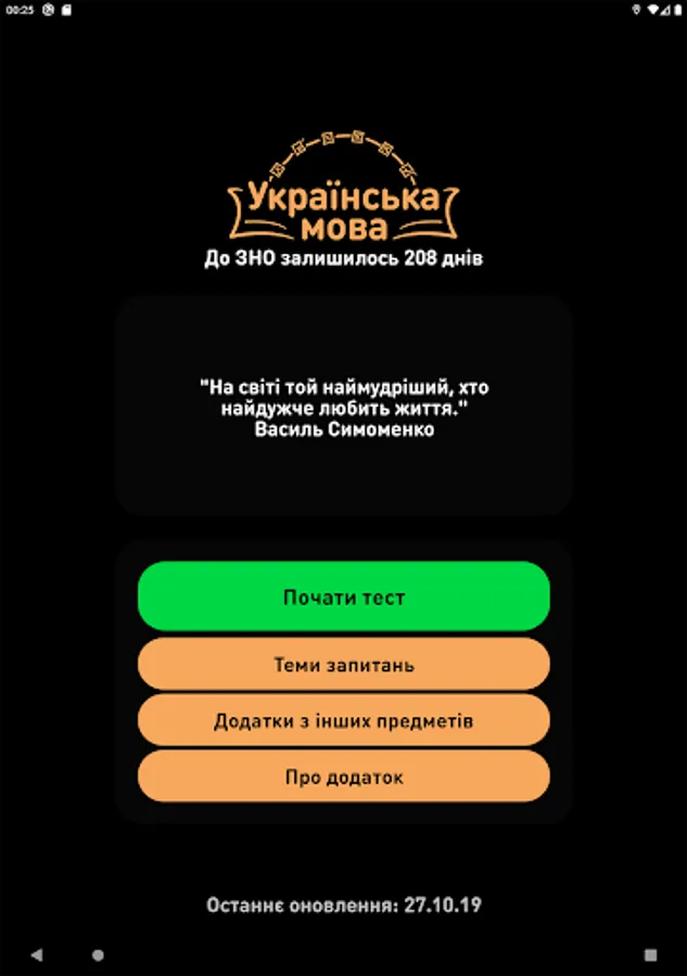 The annex congratulates you on the words of Ukrainian language literature on the main screen.