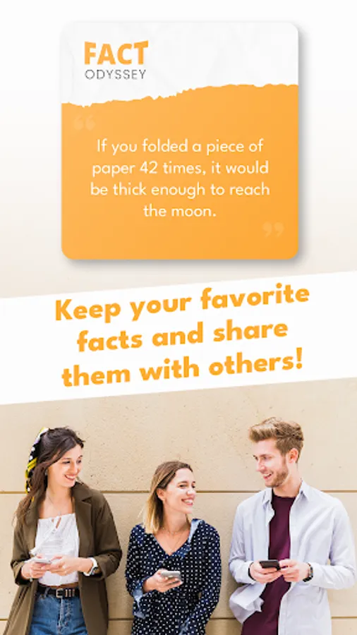 Saving your favorite facts has never been easier. With just a tap, you can save any fact to your favorites list, so you can quickly and easily access it later. And if you want to share a fact with your friends, you can do so with just a few taps. With Fact Odyssey, sharing knowledge has never been simpler.
